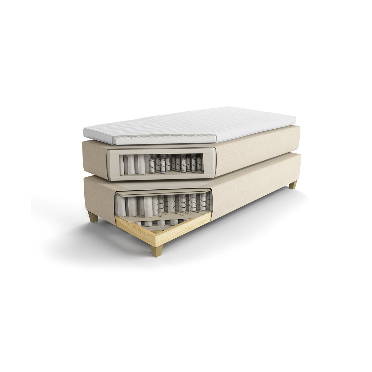 Spring system: Jensen® Zone System based on 14 cm Jensen® Aloy® springs. Mattress topper: SoftLine III with Innergetic® Latex filling.