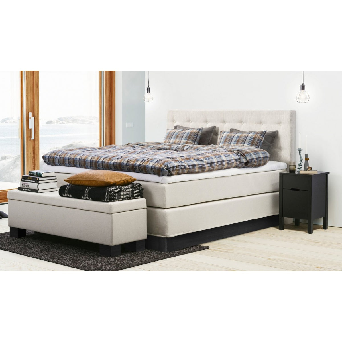 The Continental Prestige continental bed from the Jensen collection is an exceptionally elegant bed with a modern design. The exclusive Beailieu furniture fabrics in natural, beige, brown and anthracite colors were used to cover the bed. The bed has been equipped with the best Jensen pocket spring system. The mattress topper, on the other hand, is made of fibers that prevent the growth of bacteria, mold and mites.