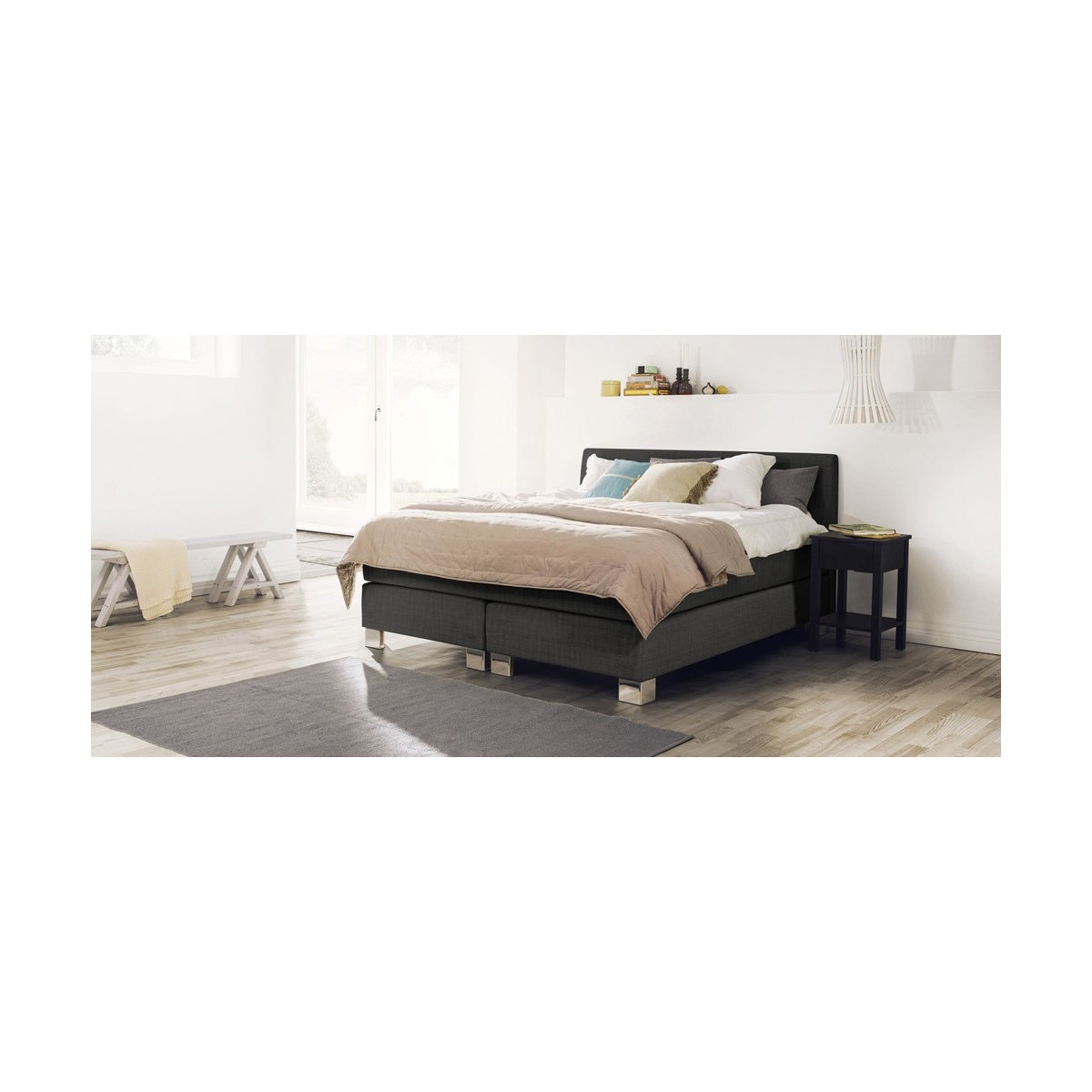 The Diplomat Continental continental bed from the Jensen collection provides high sleeping comfort. It is available in a wide range of finishes to choose from. The configuration also includes legs and accessories that can be selected according to your individual preferences. Thanks to this, you will certainly be able to build a bed that will perfectly match the arrangement of the bedroom.