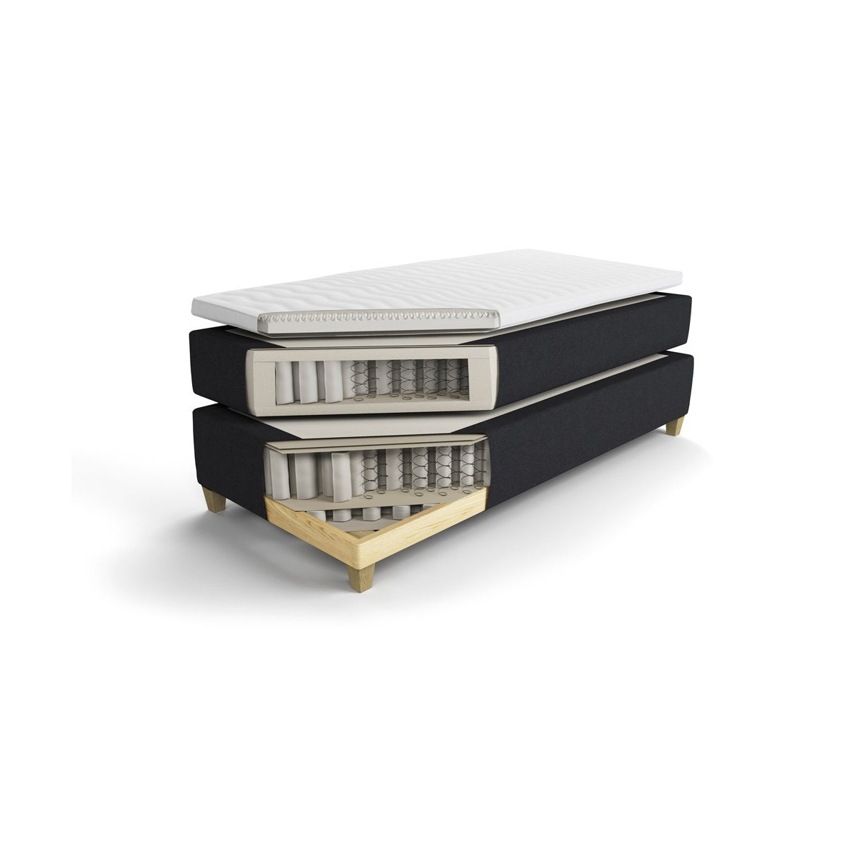Spring system: Jensen® Zone System. Mattress topper: SoftLine I. Filling: mattress topper and reversible mattress have Cellex XS filling.