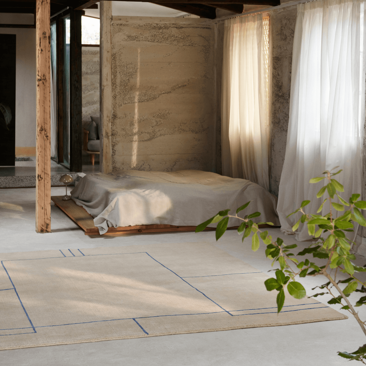 The soft Cruise AP11 rug from the All the Way to Paris collection by &Tradition is made of high-quality New Zealand wool with woven bamboo silk and an admixture of viscose. It is distinguished by a subtle, graphic pattern. Available in two colors and two sizes.