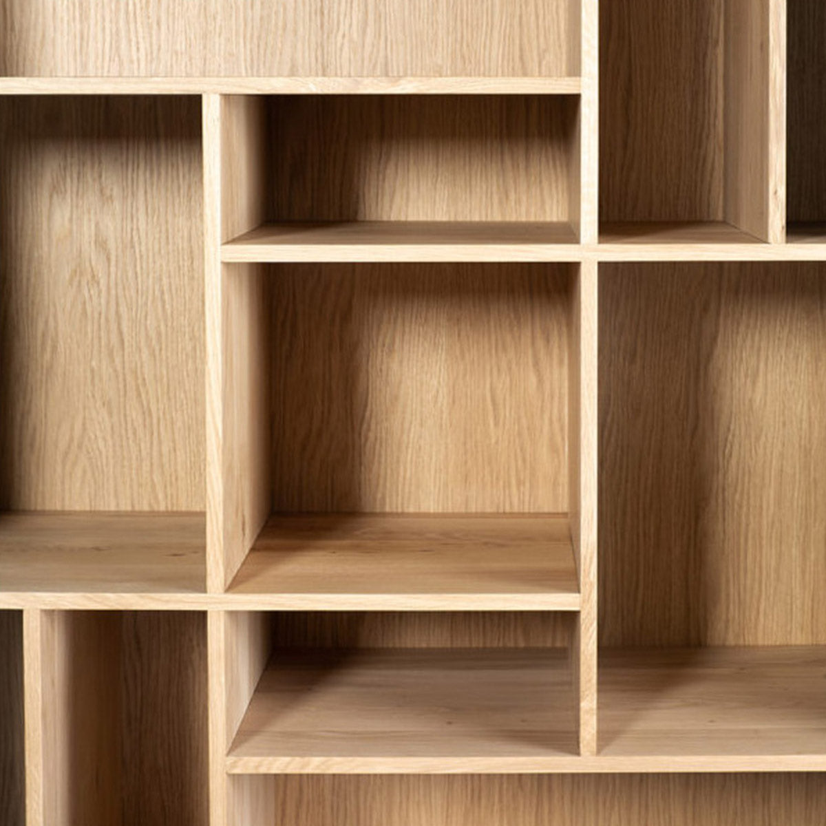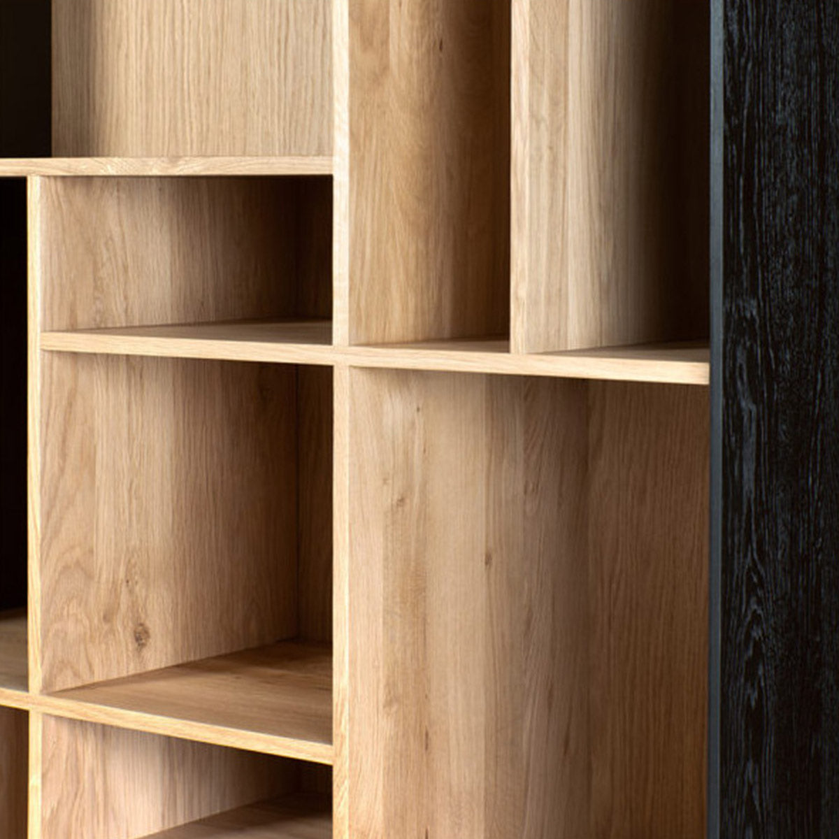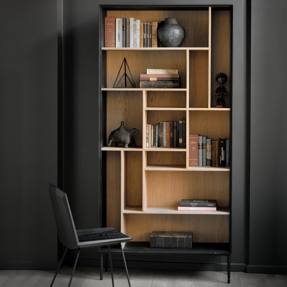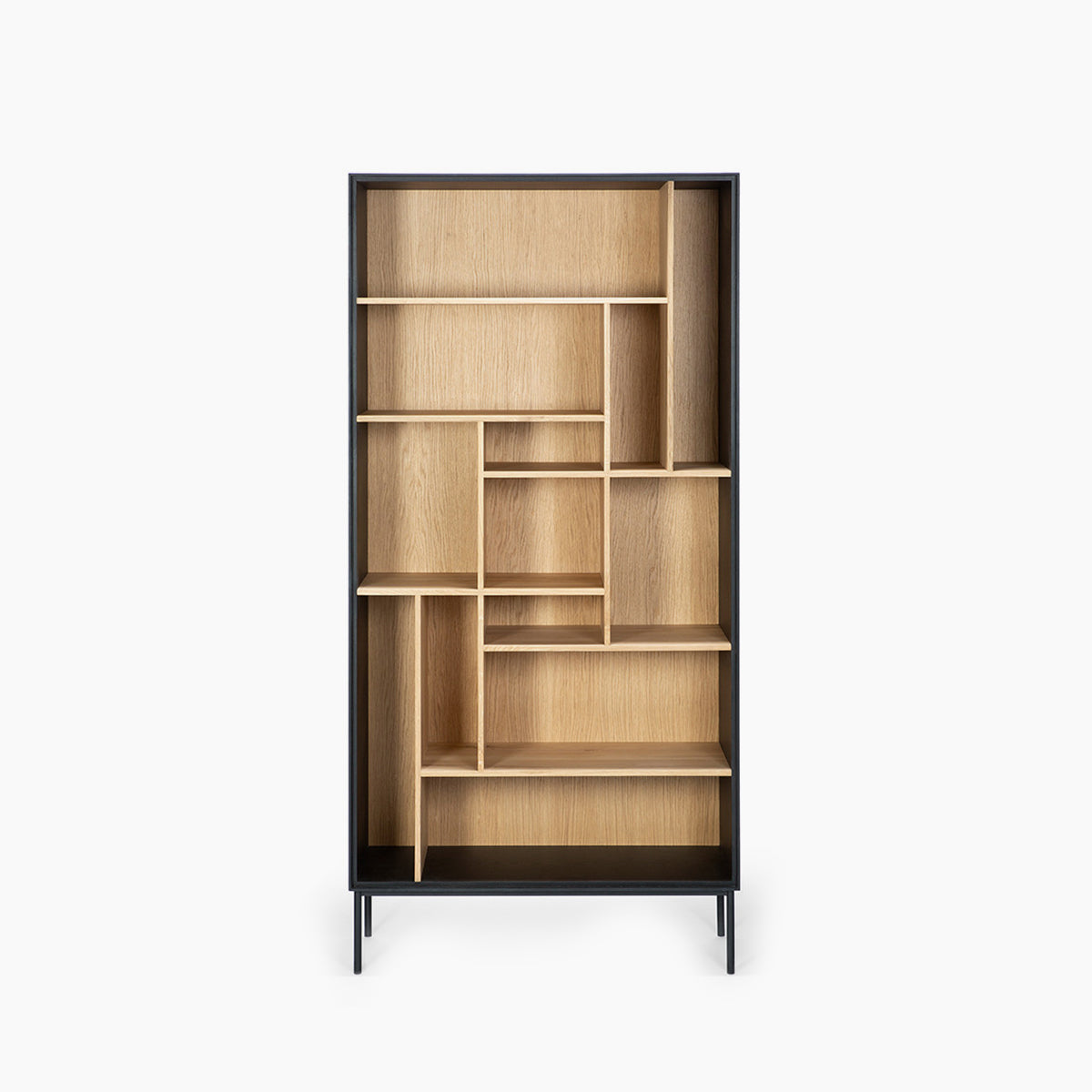 Alain van Havre has combined one of his most classic designs with a newer collection. Blackbird is made of oak wood. Supported on metal legs. The inside of the bookcase is kept in a natural color, while the outside is painted black.