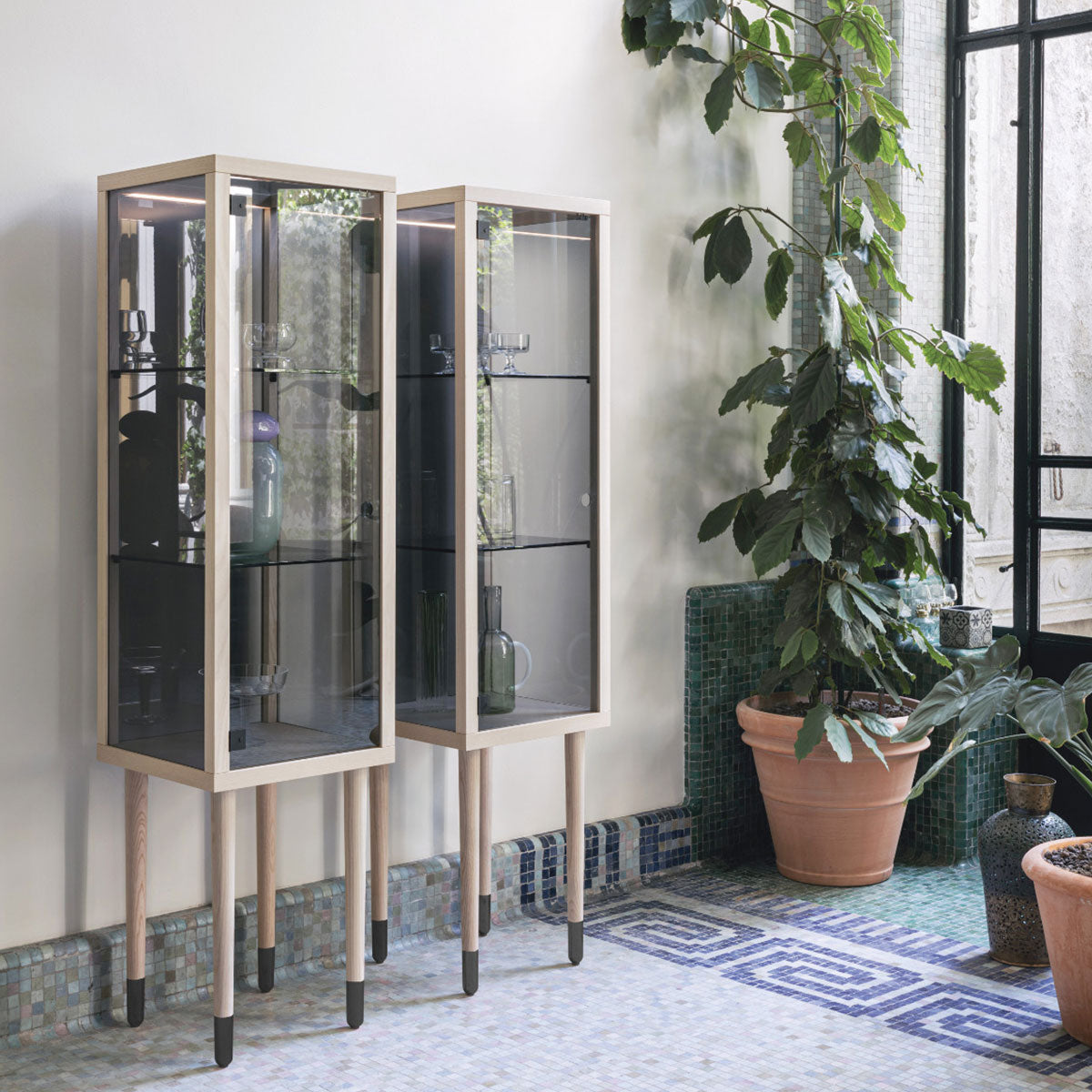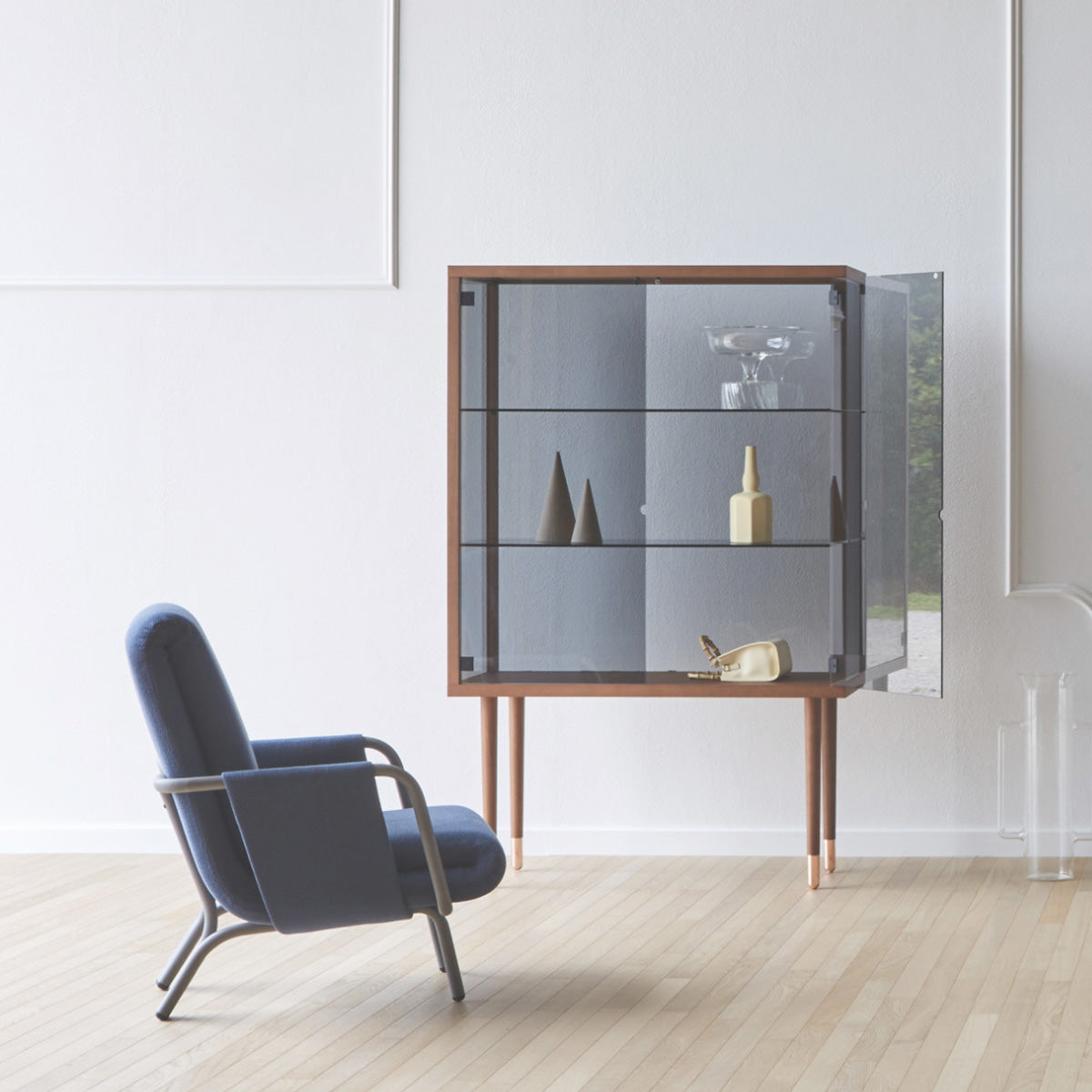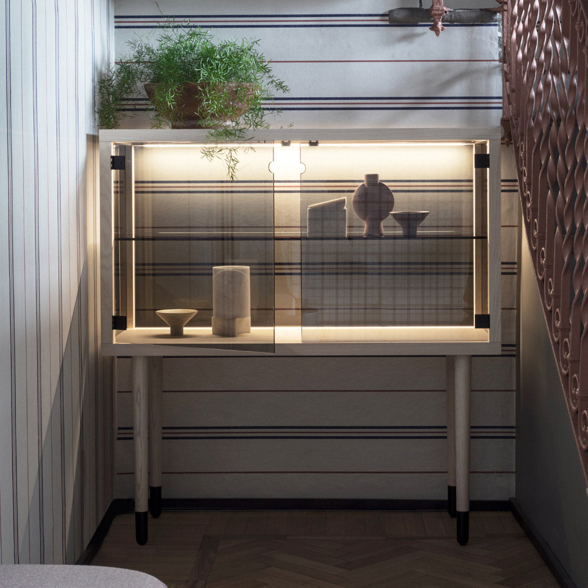 Juno from the Italian brand Miniforms is a series of 3 stylish sideboards. It was made of solid wood and glazed elements. Juno is distinguished by long legs that enliven the simple form of the sideboard. Available in three sizes and in different colors.