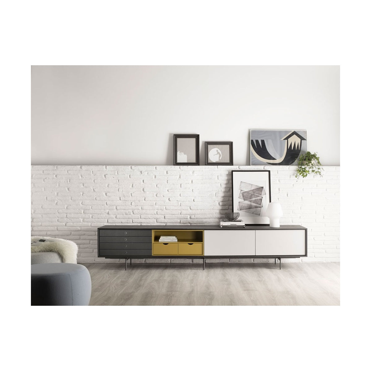 TV cabinet from the Aura collection belonging to the Trek modular furniture range. The Aura Treku furniture collection was created mainly for cabinets and chests of drawers for the living room and dining room furniture. The design used to create furniture from the collection was inspired by the design of Scandinavian countries. The Aura collection is a perfect combination of tradition and naturalness with a large dose of modernity.