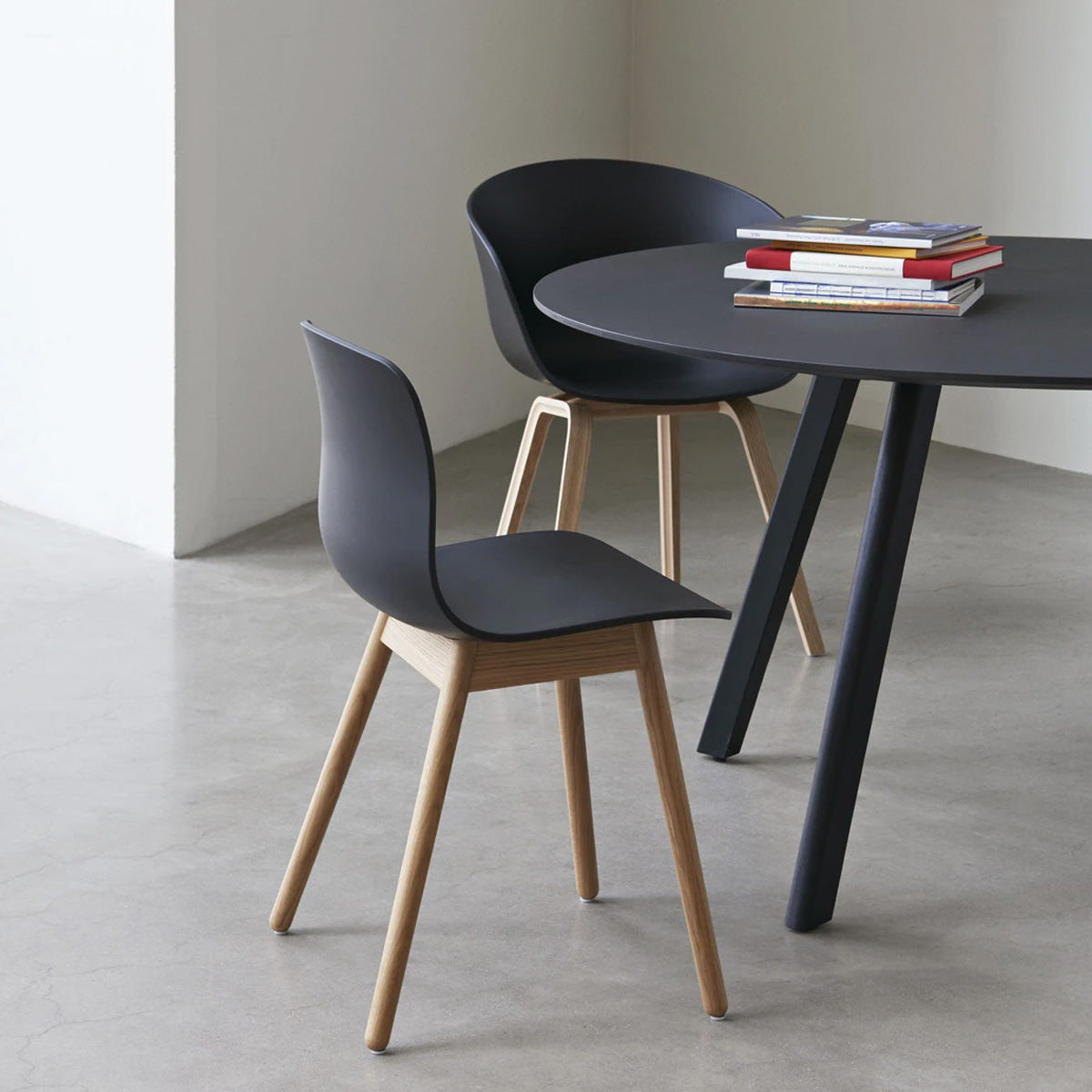 The chair’s moulded shell gives a comfy, flexy feel that’s yours to enjoy after a simple 3-click assembly. For strength and beauty wood is mixed into the charcoal grey plastic, like decorative sprinkles.