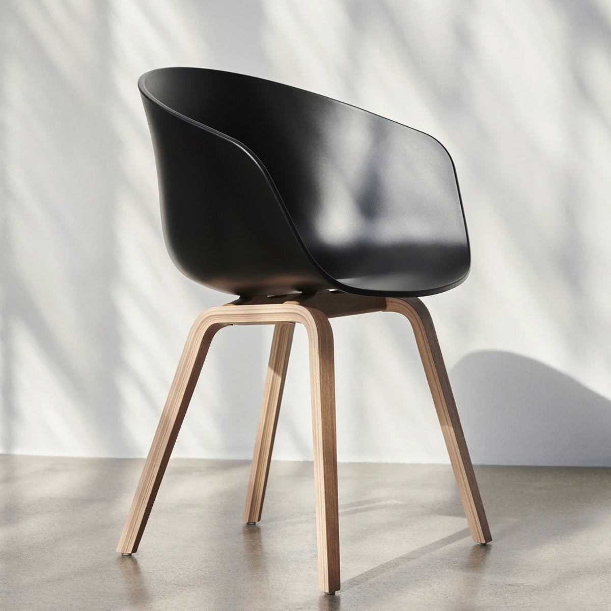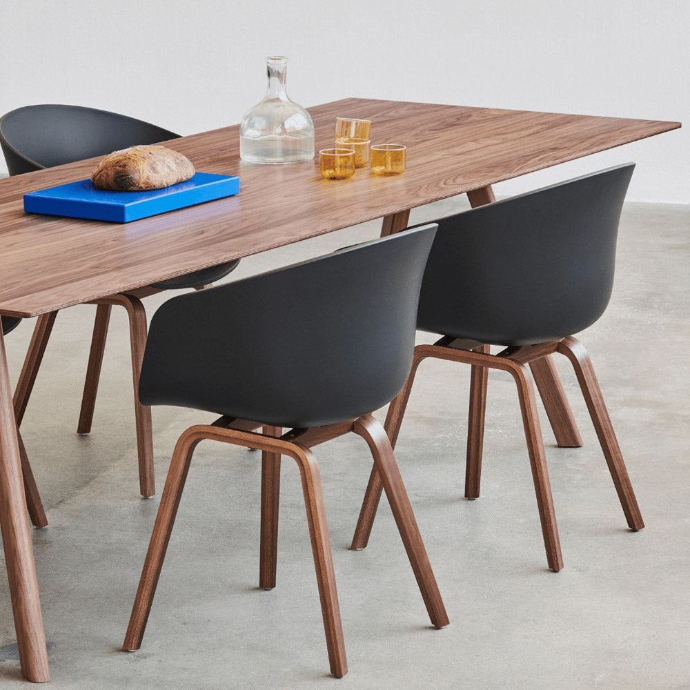 Seat: 100% recycled polypropylene (PP) Legs: solid walnut wood