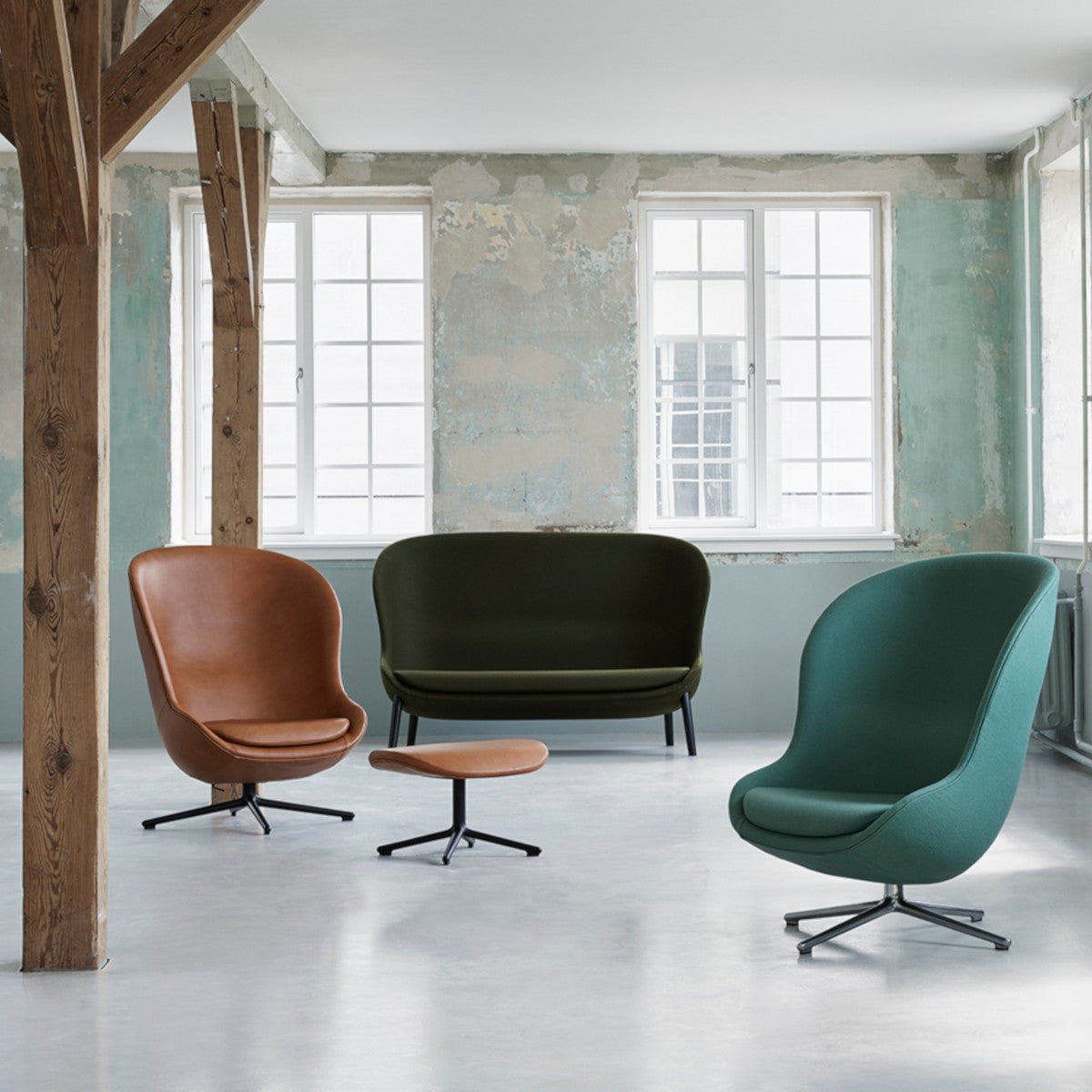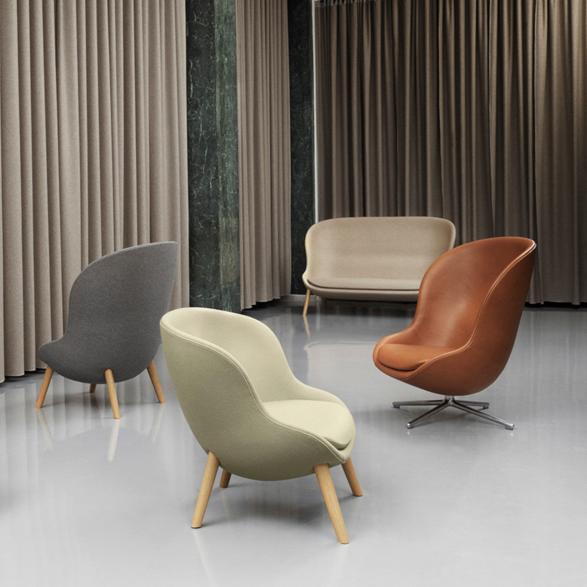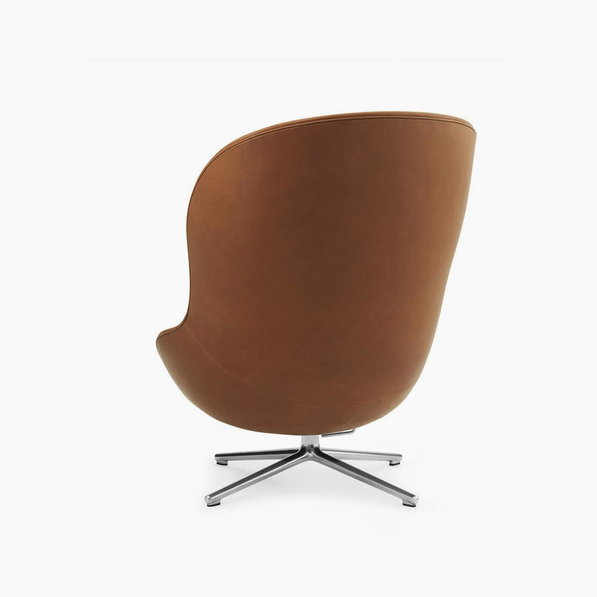 The name of the Hyg armchair comes from the Danish word "hygge", which is synonymous with safety, well-being, warmth and comfort. The Hyg High Swivel and Tilt Aluminum Ultra Leather armchair from Normann Copenhagen is a high version that reclines on a swivel base. The armchair is very modern and functional.