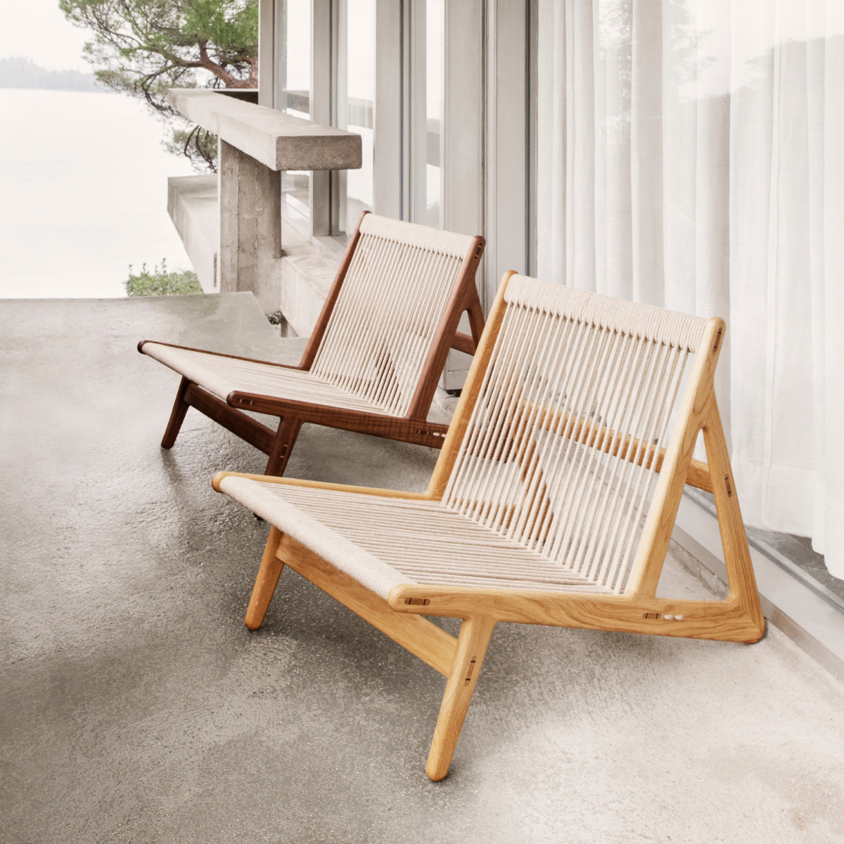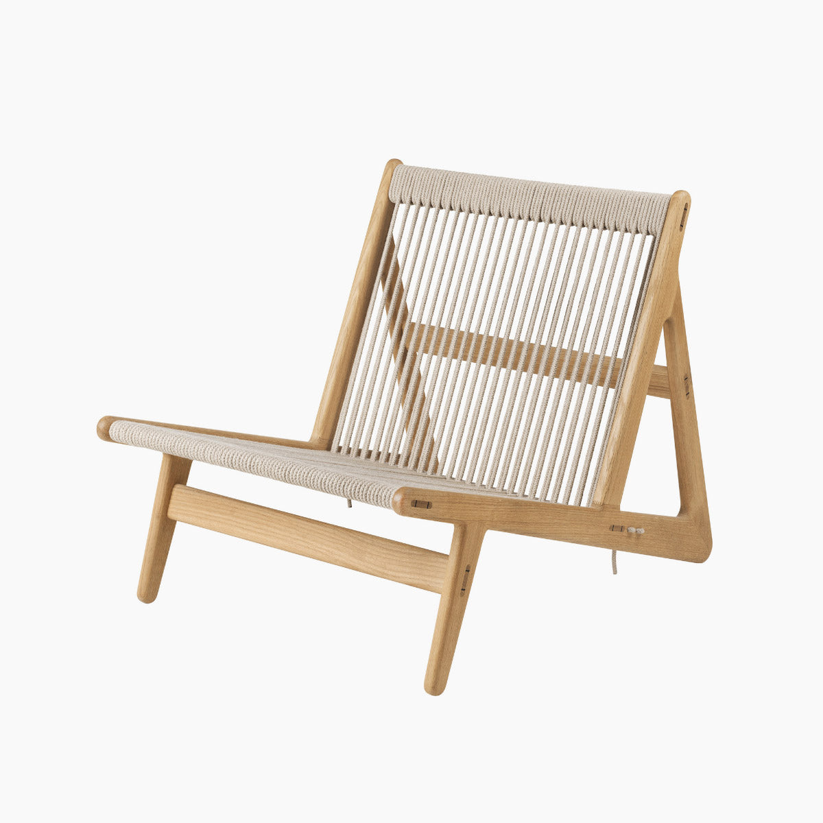 The lounge chair by Danish designer Mathias Steen Rasmussen is a combination of craftsmanship, comfort and sustainability. Solid wood combined with 90 meters of hand-woven linen rope creates a simple, flexible and lightweight chair. The open triangular frame, available in walnut or oak, has been constructed without the use of a single screw. MR01 Initial can provide comfort all year round.