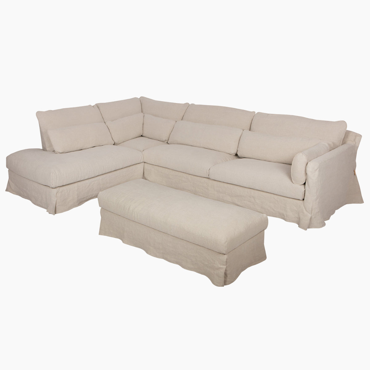The Sara footrest in the Lux comfort version is available in two sizes. It has a loose sheathing in the fabric. It looks great in a linen finish. Equipped with a capacious storage compartment. The Sara collection also includes sofas in various sizes and configurations. Details in the product data sheet.