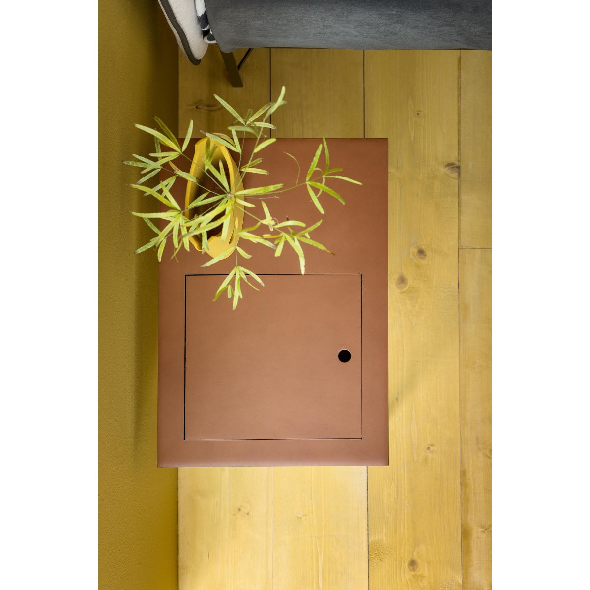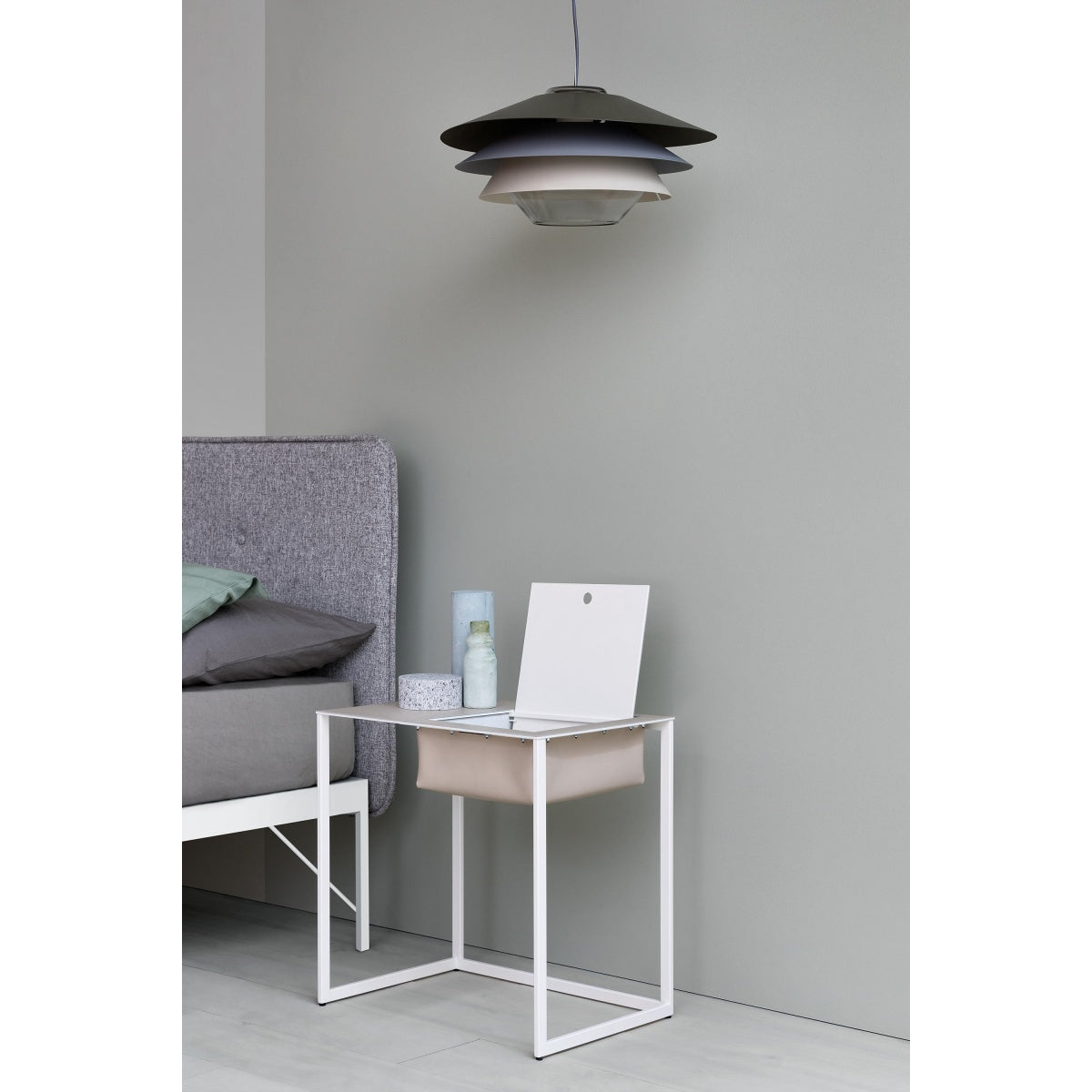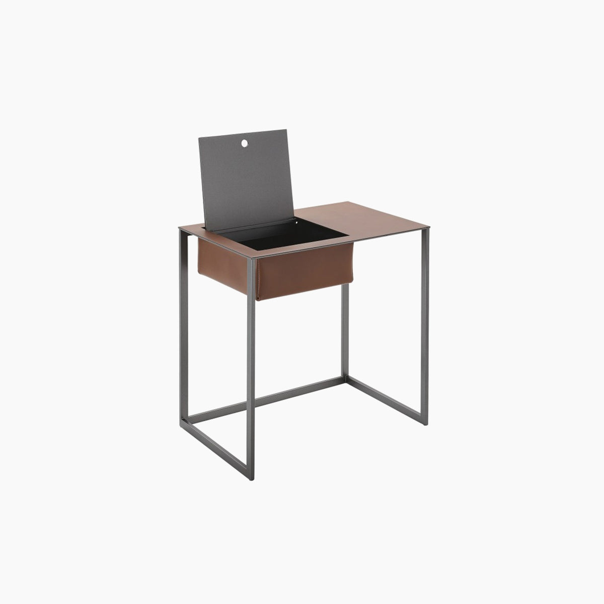 Taschino bedside table by Zanotta entirely made of painted steel. It fits perfectly into a loft-style bedroom. This piece of furniture, compared to other tables, is distinguished by a practical storage compartment that opens from the top. Available in several colors and with a storage compartment on the left or right side. Technical details in the data sheet.