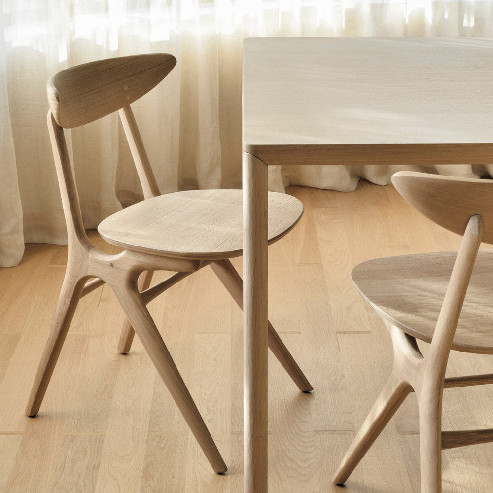 With its padded seat and backrest smartly clad in matte leather to match either the tan or black lacquered finish, Simon Legald's side chair retains its honest simplicity. Timb features a subtle interplay of curves and straight lines and the artisanal dowel joinery makes it possible to produce the sustainably sourced wood chair without the need for screws. Its solid-ash frame and comfortably roomy seat and backrest lend a self-effacing quality that allows the design to blend easily in almost any setting